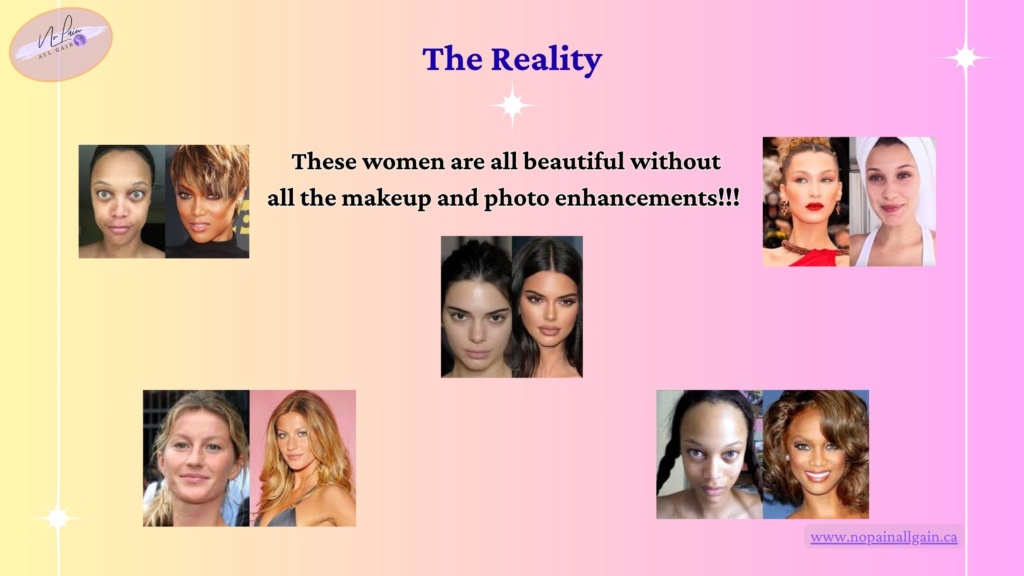 These questions of “Do I fit in? Am I good enough? Am I pretty enough? Where do I fit in this world?” cause so much damage to our self worth. So when they put these absolutely unobtainable images in the magazines, movies, and social media, it makes us feel less than when we’re not. Once you realize that those images you are comparing yourself to are not even real, it gives you the freedom to take a breath and accept yourself for who you are.